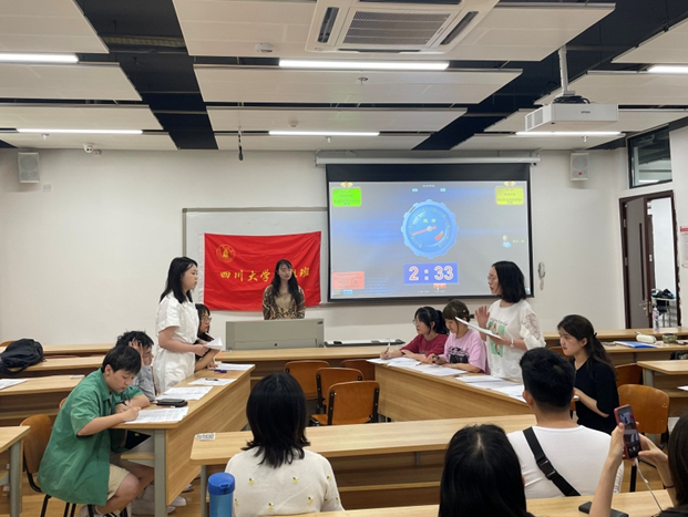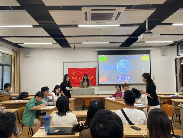 本次辩论赛的正方队伍由“江姐班”欧阳漫、罗睿、本科2018级党支部预备党员蒋菡婷、本科2020级党支部党员梁昊晨四位同学组成,观点为“铭记历史更应该铭记辉煌”;反方队伍由2020级入党积极分子袁可怡、孟怡璇、冯倩、戴融融四位同学组成,观点为“铭记历史更应该铭记苦难”。继主持人介绍完正反方辩手与规则后,比赛进入开篇立论环节。正方一辩以改革开放成功经验为例,指出在发展是第一要务的当今,铭记辉煌更能够树立民族自豪感、自信心,具有更直接的指导意义,更能培育锐意进取的民族精神与价值导向。反方四辩在质询环节通过三个反问认为跨过苦难才能取得辉煌;之后,反方一辩以遵义会议精神等为例,认为苦难是达到辉煌必经的过程,也是民族进步的重要动力之一。