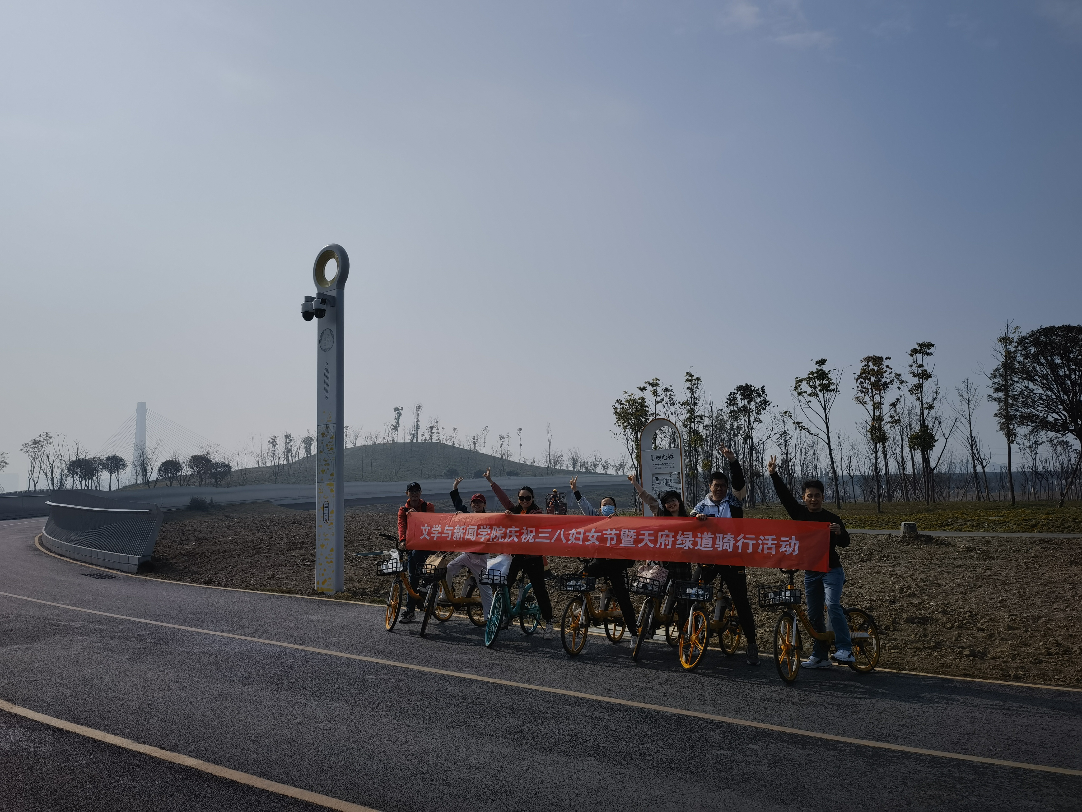 2023年3月8日,新葡萄官网举办了“庆祝三八妇女节暨天府绿道骑行活动”,欢度第113个“三八”国际劳动妇女节,共有40余位教职工参加了本次活动。