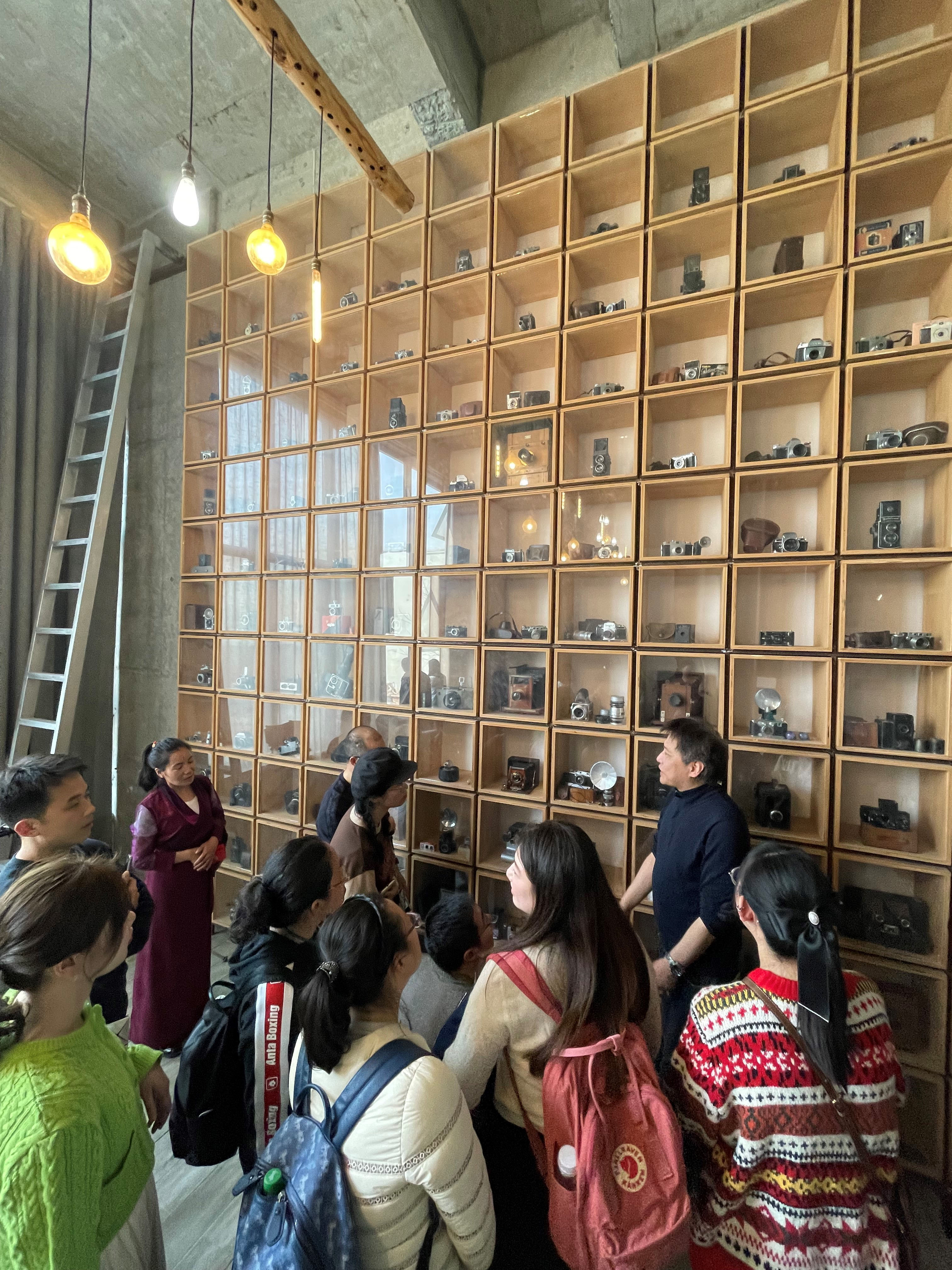 除了骑行活动,老师们还参观了新葡萄官网丁浩宸老师的工作室。丁老师向大家展示了自己创作和收藏的艺术品,并分享了一些摄影摄像方面的创作技巧和心得体会。
