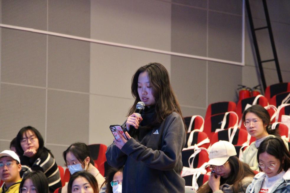 在交流提问环节,同学们热情地向三位嘉宾提问。就“诗歌在中国文化中的地位以及成都在诗坛中的份量”这一问题,叶延滨表示,诗的语言构成了我们的人生观、世界观以及人际关系。成都在中国诗坛占有重要的地位,在成都人热爱诗歌的同时,诗歌也成就了成都人的优雅并为成都增添了光彩。