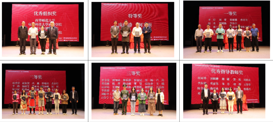 聂震宁、胡伟、郭勇、李泽敏等出席颁奖典礼的嘉宾,分别为各位获奖代表、优秀组织单位代表、优秀指导教师代表颁奖。西华师范大学图书馆副馆长李海蓉、新葡萄8883官网amg海外教育学院学生朵拉分别代表优秀组织单位、获奖者代表发言,畅谈对阅读的感悟与收获。
