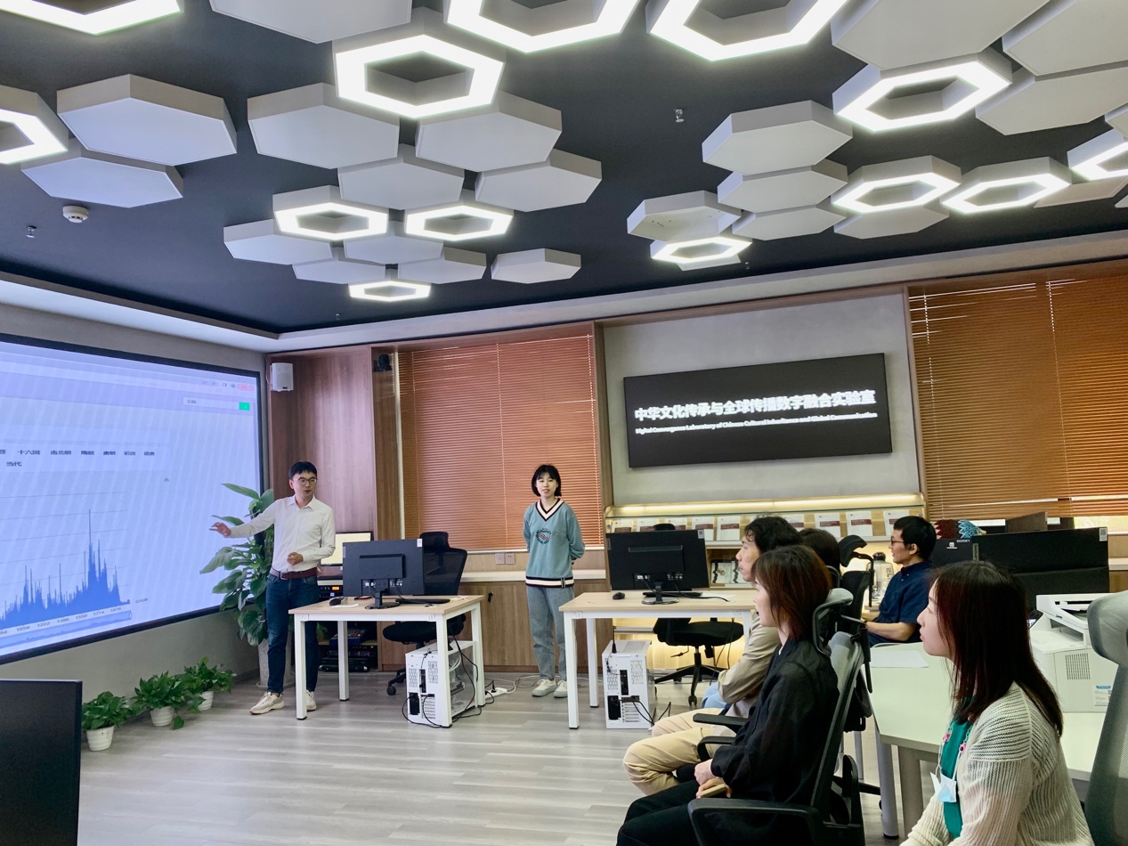 当天,北京故宫博物院数字与信息部数字资源组组长孙竞一行还参观了新葡萄官网数字人文典籍大数据分实验室、数字文学场景沉浸实验分实验室和数字多模态符号认知分实验室,深入了解了新葡萄官网数字人文研究课题与成果、方法与视角等相关情况,并就相关问题进行了充分探讨。