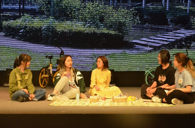 在第四篇章“春天-青春的天”中,新葡萄8883官网amg雷雨话剧社展现了春日暖阳之下,五位川大学子围坐草地上一起念诗、评诗、以诗会友的美好场景,带领现场观众一起体验卞之琳《墙头草》中的美与理趣,感受了郭沫若《天狗》中的狂与热情,回顾了新葡萄8883官网amg后勤部值班员凌丽秀与诗歌的动人故事。“黑夜的春天不怕嘲笑,光明的春天不怕雷暴。”凌丽秀的这首《有花惊动春天》中,春天的生机、坚韧与个人克服艰难、与诗为伴、读诗学诗、写诗爱诗的经历交织,人与春天浑然一体。