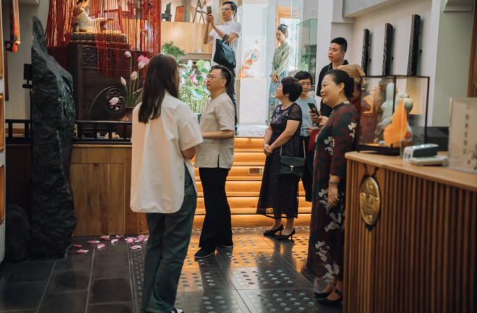 举办《大运会与中国式现代化的“万千气象”》座谈会暨互鉴雅集是全国社科界、文艺界第一次对中国式现代化的“万千气象”进行专题探讨,四川省政协常委、省文联原党组书记平志英,四川省社科联党组副书记于丽,中国旅游景区协会县域文旅发展专业委员会专家毛加庆,武侯区委宣传部副部长、区文明办主任李洁,四川省音乐家协会副主席穆兰,蜀宫琴台负责人赵伍菊,蜀宫琴台音乐坊馆馆长葛南君等嘉宾参与,以“成都大运会””中国式现代化”为主题,共话成都的“千街万巷”,探讨成都历史文脉,讲述成都千年变化的“万千气象”。座谈会开始前,与会嘉宾参观了蜀宫琴台音乐坊馆并欣赏了中国古代妆造演绎秀。
