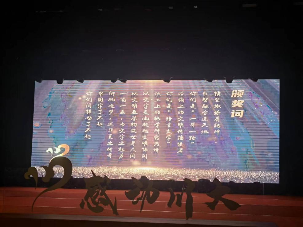 12月22日,在江安校区艺术学院小剧场举办的“感动川大”2023年度人物颁奖典礼上,新葡萄官网“了不起的中国字”团队凭借其以数智融合传播汉字文化的突出表现而获此殊荣。今年10月,“了不起的中国字”团队代表新葡萄8883官网amg参加第十八届“挑战杯”全国大学生课外学术科技作品竞赛,在主体赛中获得国家级特等奖,为四川省高校今年获得主体赛特等奖的三个团队之一。在刚刚过去的新葡萄8883官网amg2022-2023年度“挑战杯”学生课外学术科技节表彰大会上,新葡萄8883官网amg荣获优秀组织奖,罗鹭副院长和伍诗涵同学分别作为学院代表和团队代表发言。罗鹭副院长在发言中总结了文新团队今年取得的好成绩,并从“组织重视,部门联动”“牵线搭桥,重点孵化”“长期布局,以赛促学”这三个方面进行了经验交流。