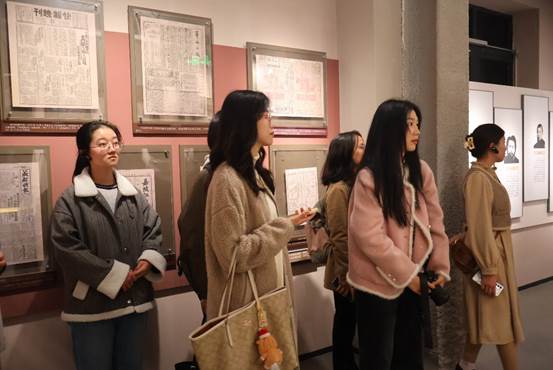 此次学习实践活动从参观四川报业博物馆拉开帷幕,在讲解员的带领下,川大文新学院师生沉浸于馆内展览,他们通过讲解了解四川报业70余年岁月的发展历程,体悟四川报人的精神气质,感受巴蜀大地的人间烟火与时代发展的辉煌成就。透过一张张报纸原版,师生们追溯中国、四川报业的历史起源,回顾川报人定格巴蜀百态、深入民生基层的职业初心。参观中,通过博物馆内的智能交互设施,师生们亲身体验文化报道,直观感受到多元生动的新媒体技术。