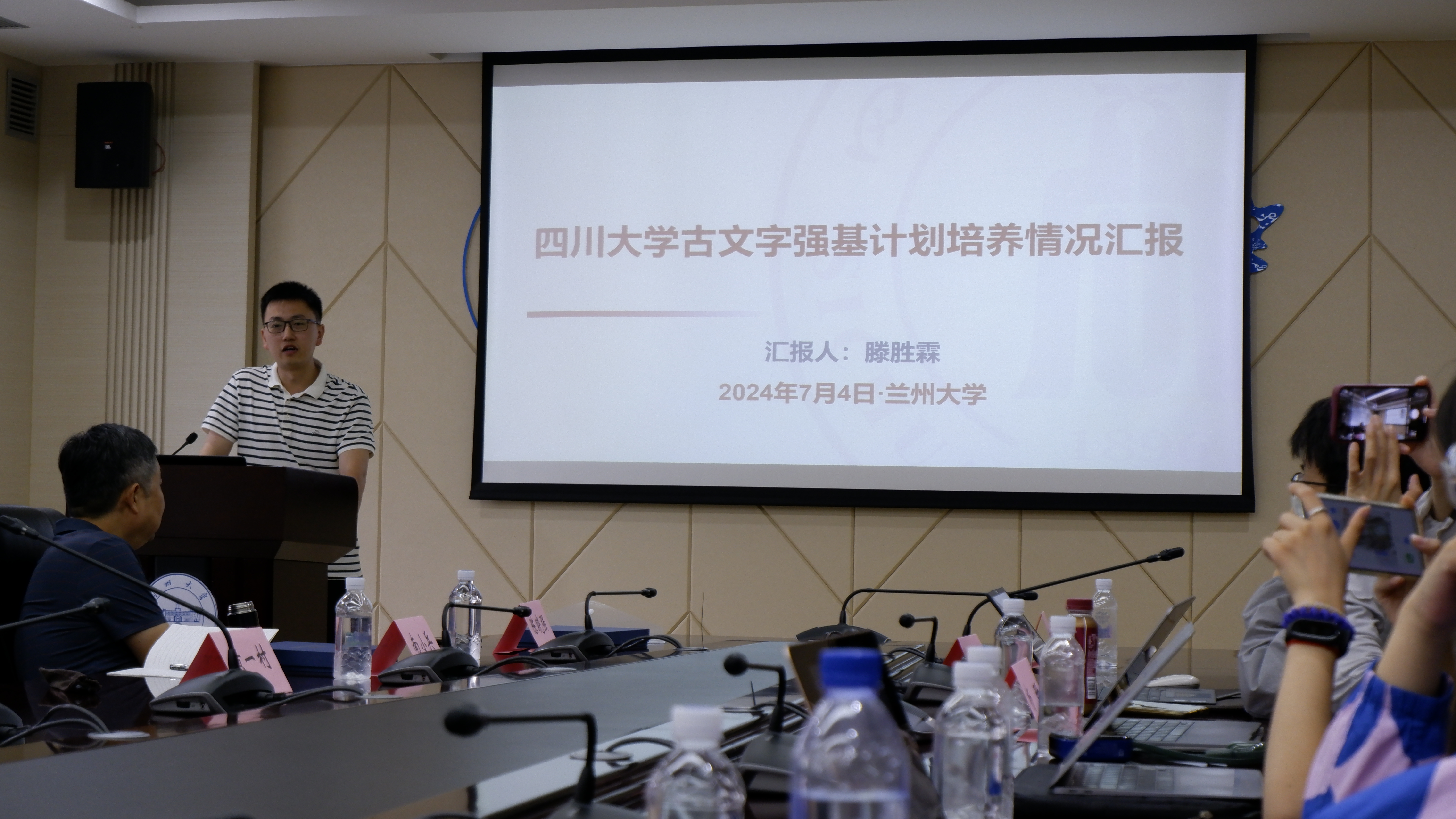 7月4日上午,师生一行前往兰州大学城关校区,与兰州大学文学院古文字学强基班师生共同开展“兰州大学-四川大学古文字学强基专业人才培养研讨会”。会上,兰州大学文学院陈晓强老师与新葡萄8883官网amg滕胜霖老师分别就两校古文字学强基专业建设情况与学科建设特点进行了介绍。兰州大学文学院黄一村老师通过对专业课程的建设思路和授课经验进行介绍,强调了培养有基础也有能力的人才的必要性。在交流过程中,川大和兰大老师们在线上线下开展合作方面达成共识,以期提升强基计划人才培养成效。