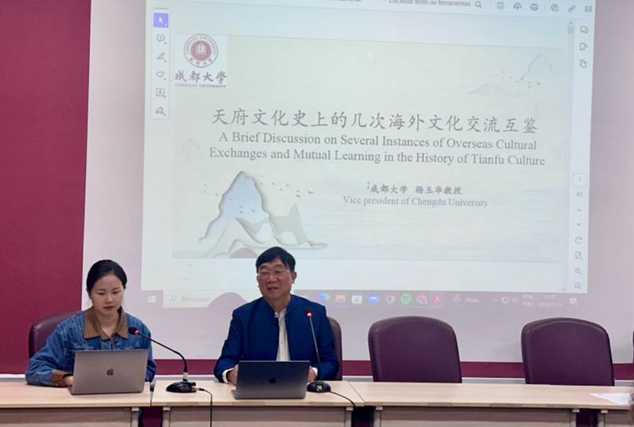 杨玉华教授以《天府文化史上的几次海外文化交流互鉴》为题作主旨发言,发言中杨玉华教授用大量鲜活的案例论证了历史悠久、璀璨辉煌的天府文化与海外的交流互鉴,展示了天府文化博大精深、互鉴发展的文化特质,引起与会者的浓厚兴趣。