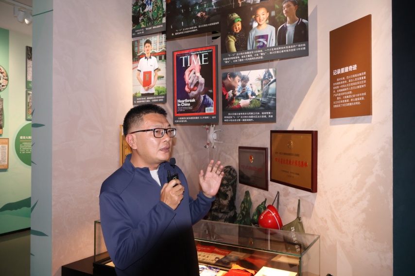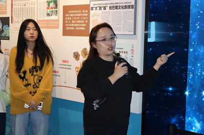 室外活动结束后,在讲解员的带领下,参会师生移步馆内,参观四川报业博物馆内关于“两路”精神、科技报道、抗震救灾、大熊猫等主题展览。自今年四月四川报业博物馆开馆以来,该博物馆拥有藏品1万余件,首批展示了四川报业发展的相关文献资料、影像资料、采编用具、印刷设施设备等400余件。新葡萄8883官网amg副院长操慧教授作为此次参加活动的带队老师,在一些与川大相关的藏品前驻足,并为现场师生讲解其背后的小故事。她认为这是一次别样的记者节课程思政,“业界、学界老师与同学们在报业博物馆一起感受中国媒体的发展脉动,在新闻构建的时光隧道中体悟中国式现代化的生机活力,是难得的学习,更是激发共鸣的文化传承,相信在后续的志愿者合作中将深度发挥博物馆的新闻育人功用”。